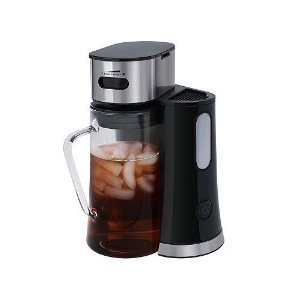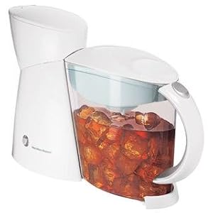 Coffee drinkers have their automatic brewers, why shouldn't tea drinkers? Ideal for family gatherings or summer picnics, this versatile machine brews up 2-1/2 quarts of iced tea quickly and easily. Simply pour water into the water reservoir and add the desired amount of tea to the removable brew basket--five to seven bags of tea or 2 to 3 tablespoons of loose tea work well when brewing a full pitcher; sugar, lemon, and other flavorings can also be added to the brew basket for customized results. Then fill the pitcher with ice cubes to the ice-level marking and insert into the machine, close the top lid, and push the "on" button. The water heats up and steeps the tea in the brew basket, then hot tea drips down into the pitcher of ice. At the end of the brewing cycle, the machine shuts off automatically for safety and peace of mind. Other highlights include a power indicator light, a water window in the reservoir for accurate filling, an adjustable brew strength, and a permanent filter for use with loose tea. The pitcher provides a lid, a generous handle, and a nondrip pouring spout for graceful serving, and the pitcher, pitcher lid, and brew basket clean up easily by hand or in the dishwasher. The iced-tea maker measures 11 by 10 by 13-1/2 inches and carries a one-year limited warranty.